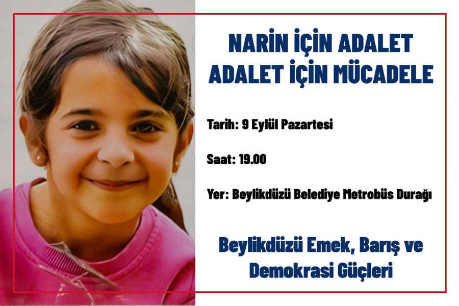 Beylikdüzü Emek, Barış ve Demokrasi Güçleri 'Narin için adalet, adalet için mücadele' diyerek buluşuyor.