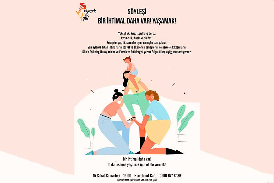 Şişli Ekmek ve Gül Grubu Klinik Psikolog Nuray Yılmaz ve Ekmek ve Gül dergisi yazarı Fulya Alikoç’un katılacağı etkinlik için şu çağrıyı yaptı:
