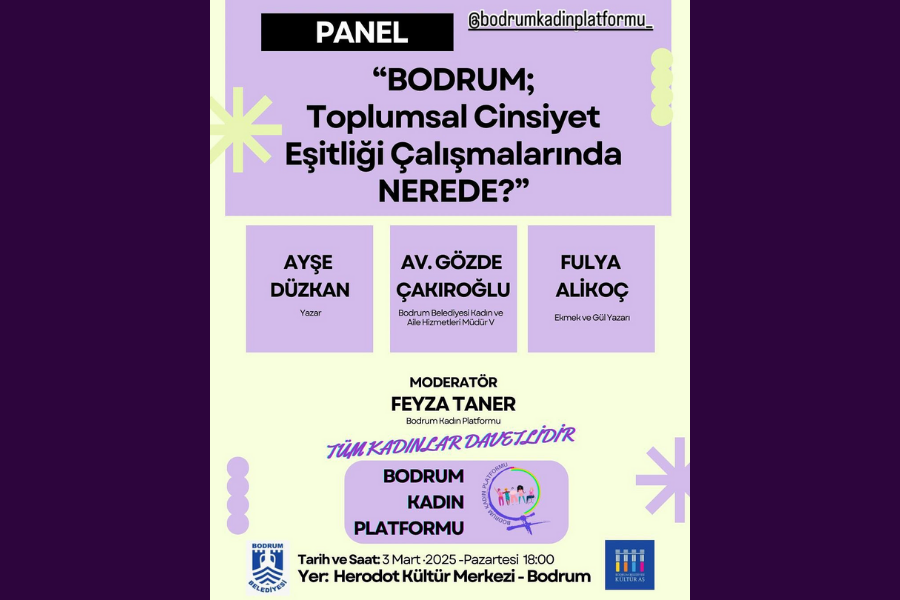 Bodrum Kadın Platformu, 'Bodrum toplumsal cinsiyet eşitliği çalışmalarında nerede?' başlıklı panele çağırıyor.