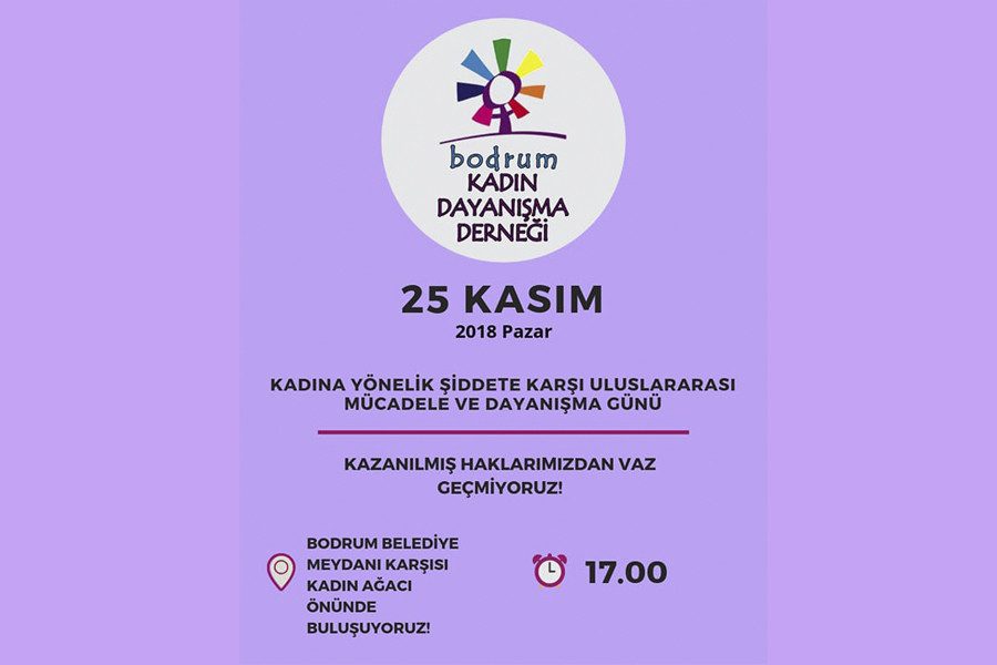 25 Kasım Kadına Yönelik Şiddete Karşı Uluslararası Mücadele ve Dayanışma Günü kapsamında etkinlikler yapacak Bodrum Kadın Dayanışması kadınlara şöyle sesleniyor: