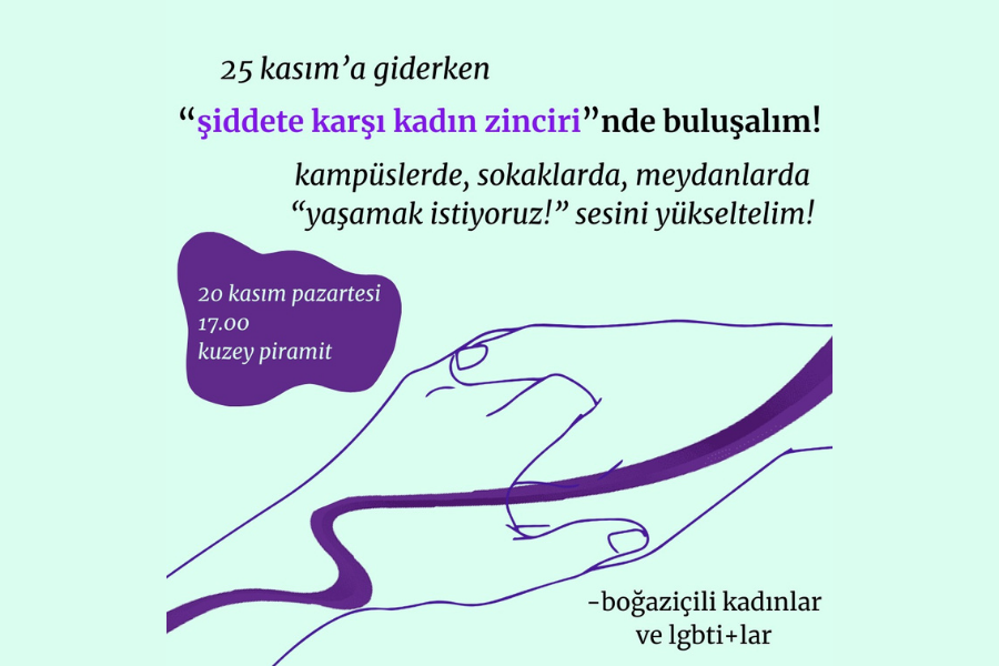 22 Kasım'da Boğaziçili kadın ve LGBTİ'ler "kampüslerden sokaklara çıktık, erkek devlet şiddetine, yoksulluğa, savaşa, gericiliğe, LGBTİ+fobiye karşı yaşamak istiyoruz!" sloganıyla buluşuyor!