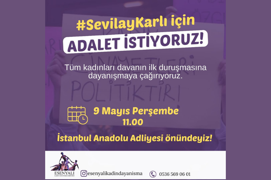 İstanbul Pendik’teki Esenyalı Köprüsü’nde 26 Şubat’ta işe giderken boşandığı erkek tarafından 11 yerinden bıçaklanarak öldürülen Sevilay Karlı davasının ilk duruşması 9 Mayıs'ta İstanbul Anadolu Adliyesinde görülecek. Esenyalı Kadın Dayanışma Derneği, tüm kadınları dayanışma için adliyenin önüne çağırdı.