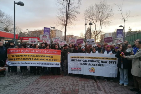 Ankara İşçi Sağlığı ve İş Güvenliği Meclisinin çağrısıyla Tarım Sendikası üyesi Agrobay işçilerinin Ankara yürüyüşü için dayanışma eylemi yapıldı