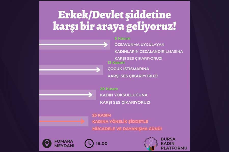 Bursa Kadın Platformu 25 Kasım eylem takvimi