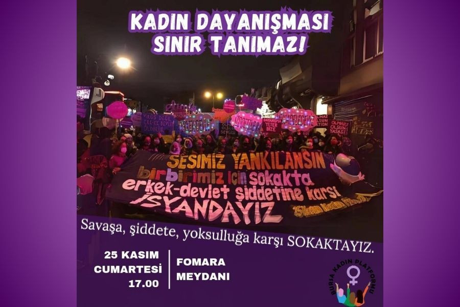 Bursa Kadın Platformu, ‘kadın dayanışması sınır tanımaz’ diyerek 25 Kasım, Kadına Yönelik Şiddete Karşı Mücadele ve Uluslararası Dayanışma Günü'ne çağrı yaptı.