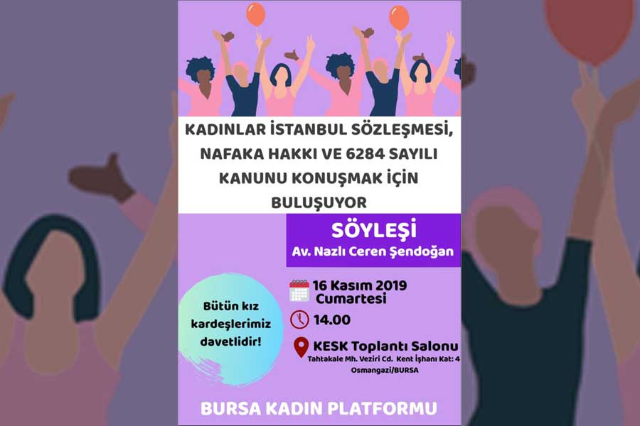Bursa’da kadınlar İstanbul Sözleşmesi, 6284 Sayılı Kanun ve nafaka hakkını konuşmak için bir araya geliyor.