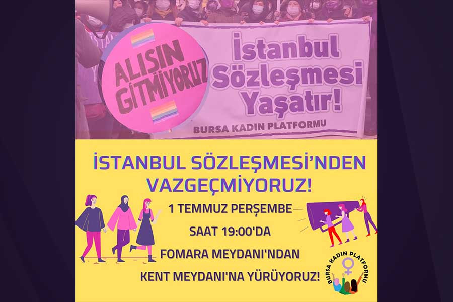 "İstanbul Sözleşmesinden vazgeçmiyoruz" diyerek çağrı yapan Bursalı kadınlar 1 Temmuz'da sokakta olacaklarını duyurdu.