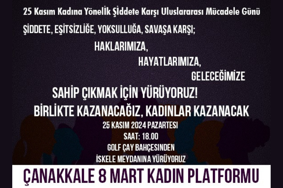 Çanakkale 8 Mart Kadın Platformunun çağrısıyla kadınlar 25 Kasım'da 'Birlikte kazanacağız, kadınlar kazanacak' diyerek kadın yürüyüşünde buluşuyor.