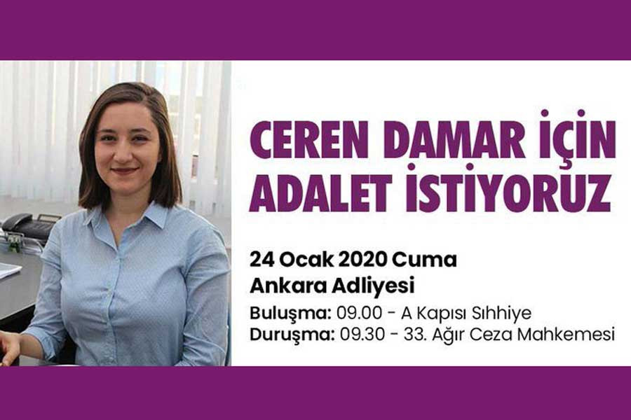 Öğrencisi tarafından öldürülen Çankaya Üniversitesi Öğretim Görevlisi Ceren Damar’ın davasında sanık ilişkileri olduğu iddiasını sürdürdü. Davaya katılanlar ise ‘Ceren Damar için adalet’ dedi.