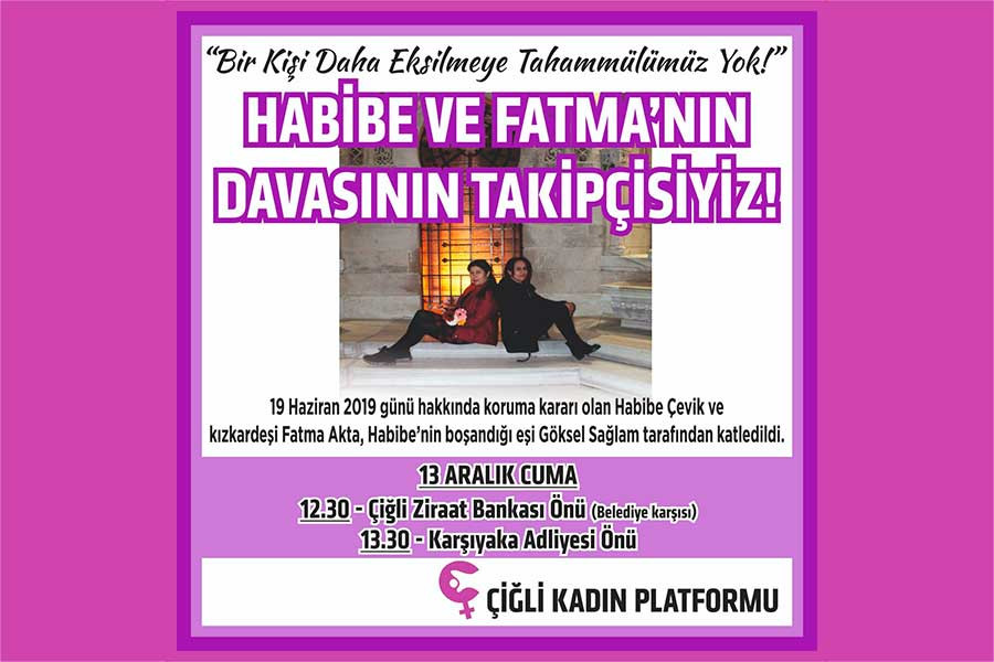 İzmir Çiğli’de cezaevinden izinli çıkıp eski eşi Habibe Çevik ile Çevik'in kardeşi Fatma Akta’yı öldüren Göksel Sağlam hakkında açılan davanın ilk duruşması 13 Aralık’ta görülecek. Davaya çağrı yapan Çiğli Kadın Platformu ise dava öncesi açıklama yapacak.