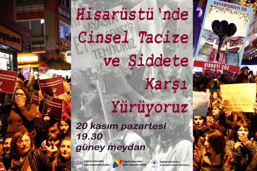 “Cinsel Tacizi Önleme Komisyonu (CİTÖK) ve BÜLGBTİ+ Çalışmaları Kulübü ile ortak olarak düzenlediğimiz yürüyüşümüze bütün üniversite bileşenlerini, mahalle sakinlerini davet ediyoruz ve cinsel tacize karşı mücadele için dayanışmaya çağırıyoruz. Yaşadığımız hiçbir alanda şiddetin hiçbir türüne izin vermeyeceğiz!”