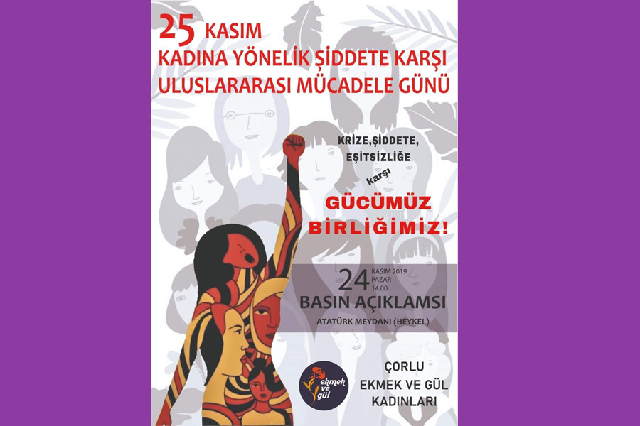25 Kasım dolayısıyla Çorlu Ekmek ve Gül Grubundan kadınlar basın açıklaması yapacaklar.