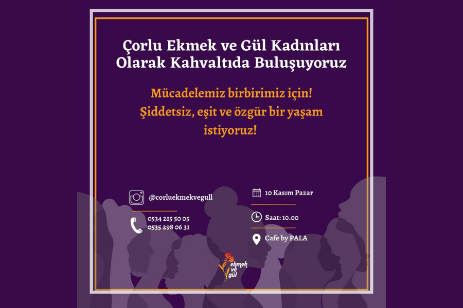 Çorlu Ekmek ve Gül, 25 Kasım yaklaşırken kadınları 'Şiddetsiz, eşit ve özgür bir yaşam istiyoruz' diyerek kahvaltıya çağırıyor.