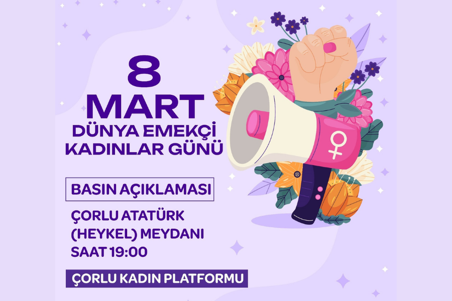 Çorlu Kadın Platformu 8 Mart'ta kadınları basın açıklamasına çağırıyor!