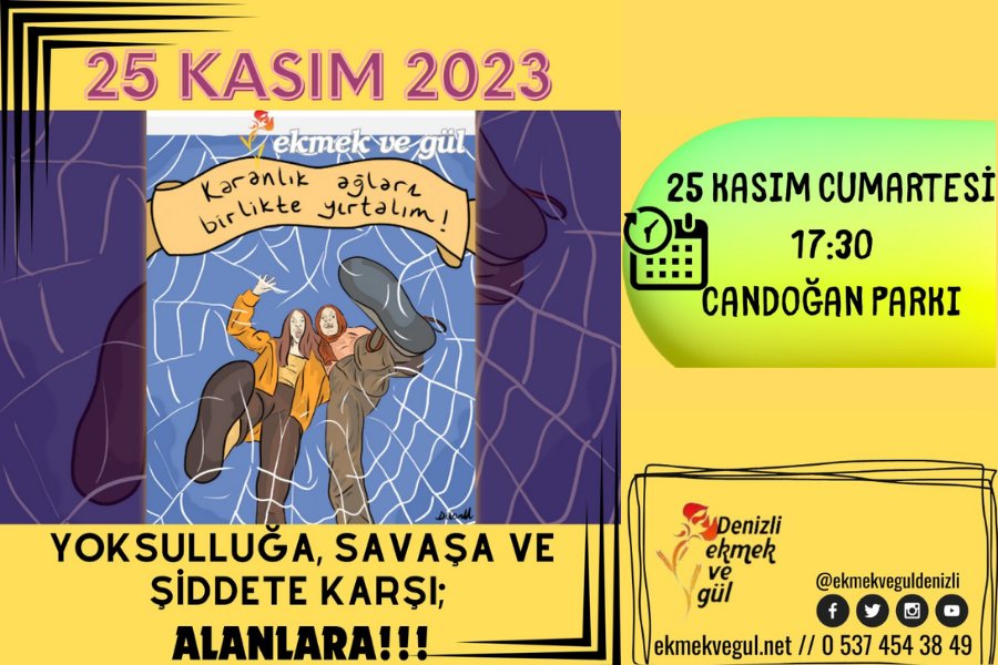 Denizli Ekmek ve Gül grubu 25 Kasım günü 'karanlık ağları birlikte yırtmak' için kadınları mücadeleye çağırıyor!