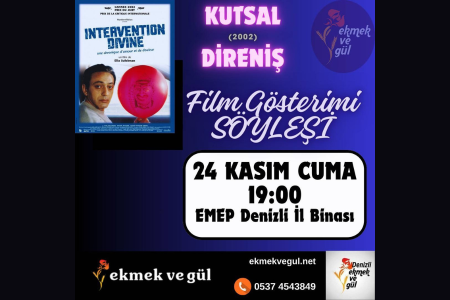Denizli Ekmek ve Gül Grubu, 25 Kasım'a giderken Kutsal Direniş filmini izleyip, kadına yönelik şiddeti tartışacak.