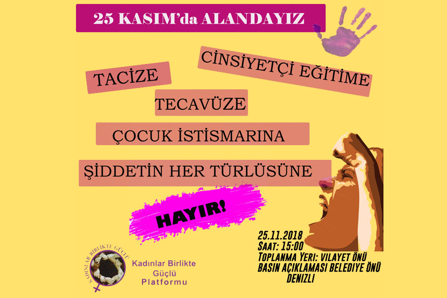 25 Kasım’da Denizli’de Kadınlar Birlikte Güçlü Platformunun çağrısıyla kadınlar eylem yapıyor.