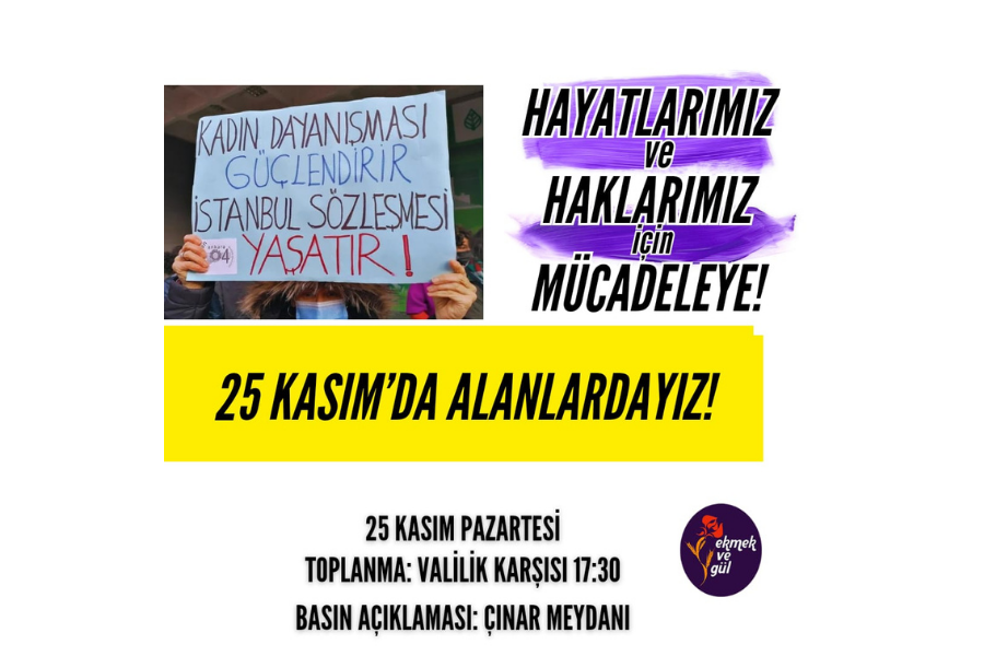 Denizli Ekmek ve Gül grubu, 25 Kasım Kadına Yönelik Şiddete Karşı Uluslararası Mücadele ve Dayanışma Günü için basın açıklaması düzenliyor.
