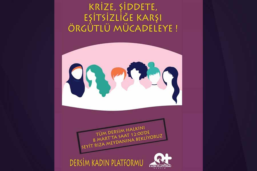 8 Mart Dünya Emekçi Kadınlar Günü’nde Dersim Kadın Platformu, ‘Eşitsizliğe karşı örgütlü mücadeleye’ şiarıyla Seyit Rıza Meydanında olacak.