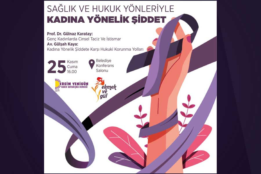 Dersim Yenigün Kadın Dayanışma Derneği ile Munzur Üniversitesi Ekmek ve Gül Grubu, 25 Kasım Kadına Yönelik Şiddete Karşı Uluslararası Mücadele ve Dayanışma Günü dolayısıyla söyleşi düzenleyecek. “Sağlık ve hukuk yönleriyle, kadına yönelik şiddet” başlığıyla düzenlenecek söyleşide Prof. Dr. Gülnaz Karatay ve Avukat Gülşah Kaya konuşmacı olarak yer alacak.