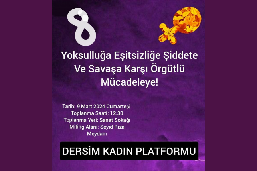 Dersim Kadın Platformu kadınları, 'Yoksulluğa, eşitsizliğe, şiddete ve savaşa karşı" örgütlü mücadeleye çağırıyor.