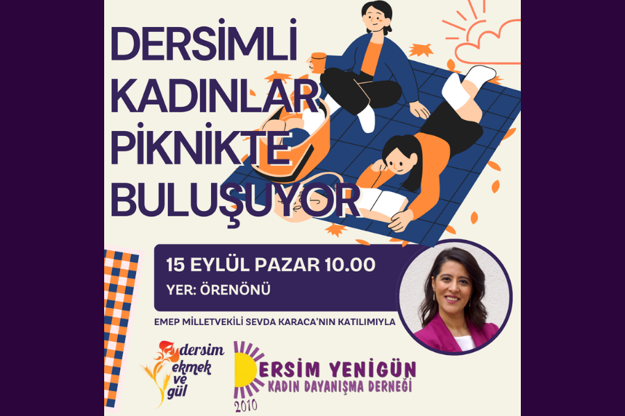 Dersim Yenigün Kadın Dayanışma Derneği ile birlikte Derismli kadınları EMEP Milletvekili Sevda Karaca'nın katılmıyla, 15 Eylül'de piknikte buluşmaya çağırıyoruz.