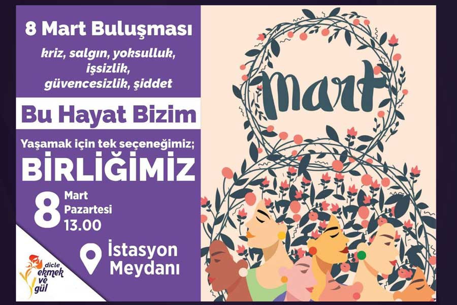 8 Mart Dünya Emekçi Kadınlar Günü’nde Dicle Amed Kadın Platformu, 13.00’te İstasyon Meydanı’nda olacak.
