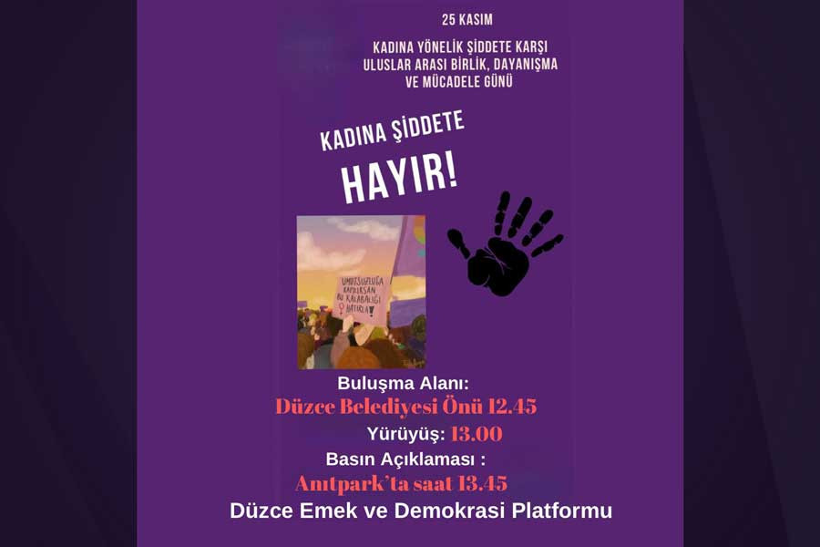Düzce’de 25 Kasım günü Düzce Belediye önünde buluşacak emek demokrasi güçleri Anıtpark’a yürüyerek açıklama yapacak.