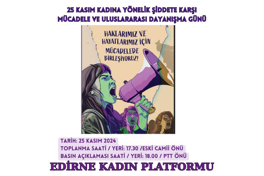 Edirne Kadın Platformunun çağrısıyla kadınlar 25 Kasım'da alanda olacak.