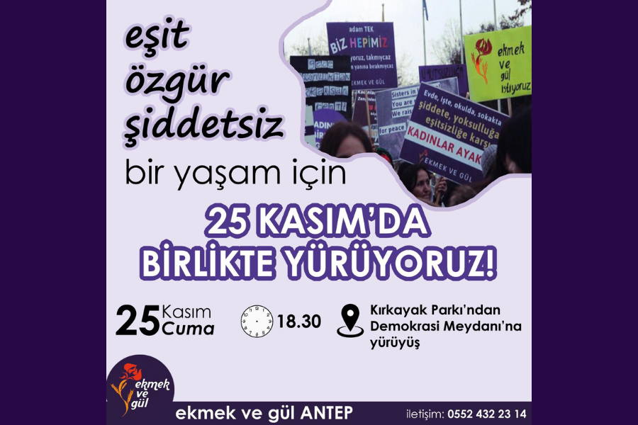 Nar Sanat ile Ekmek ve Gül Antep Grubu, 23 Kasım Çarşamba günü, 25 Kasım eylemi öncesine hazırlık için döviz atölyesinde yan yana gelecek, renkli kartonları talepleri ile dolduracak.
