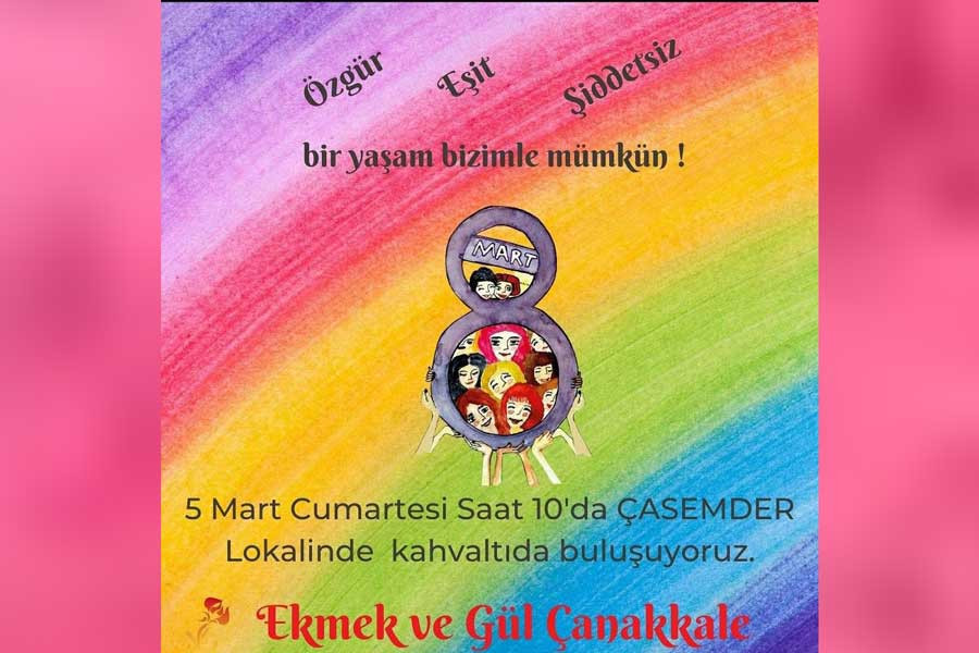 Ekmek ve Gül Çanakkale Çanakkale’deki tüm kadınlara çağrı yaptı: Özgür, Eşit, Şiddetsiz Bir Yaşam Bizimle Mümkün! 8 Mart’ta Alanlardayız!