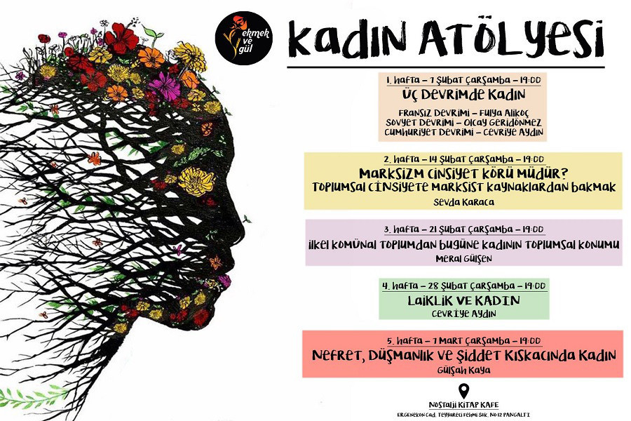 İstanbul’un Şişli ilçesinde bir araya gelen Ekmek ve Gül grubu, ilki 7 Şubat Çarşamba günü başlayacak, sonuncusu 7 Mart Çarşamba günü gerçekleşecek 5 başlıklı atölye programıyla 8 Mart’a doğru kafamızda tartışmaları dönüp duran pek çok meseleye dair güzel bir tartışma yapacak.