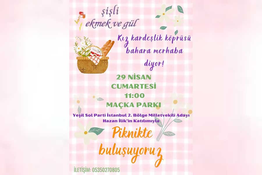 Yan yana olmak, birbirimizden güç alabilmek için oluşturduğumuz Kız Kardeşlik Köprüsüyle 1 Mayıs’a giderken taleplerimizi konuşmak için piknikte bir araya geliyoruz. Yeşiller Sol Parti 2. Bölge Milletvekili adayı Hazan İlik ile 29 Nisan Cumartesi Maçka’da.