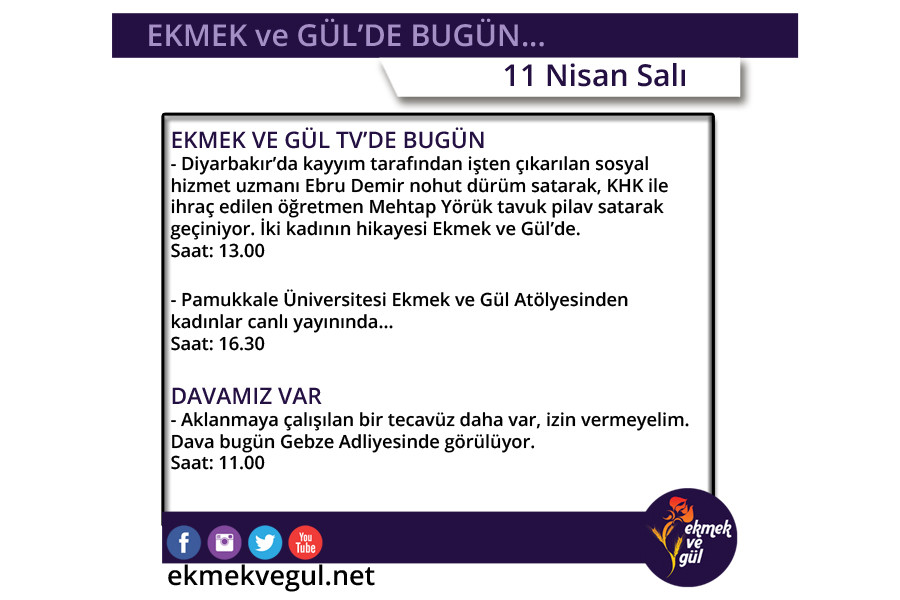 Diyarbakır'dan iki kadının hikayesi Ekmek ve Gül TV'de sizinle. Denizli'den Ekmek ve Gül Atölyesinden kadınlar canlı yayında çalışmalarını anlatıyor. Kaçırmayın...