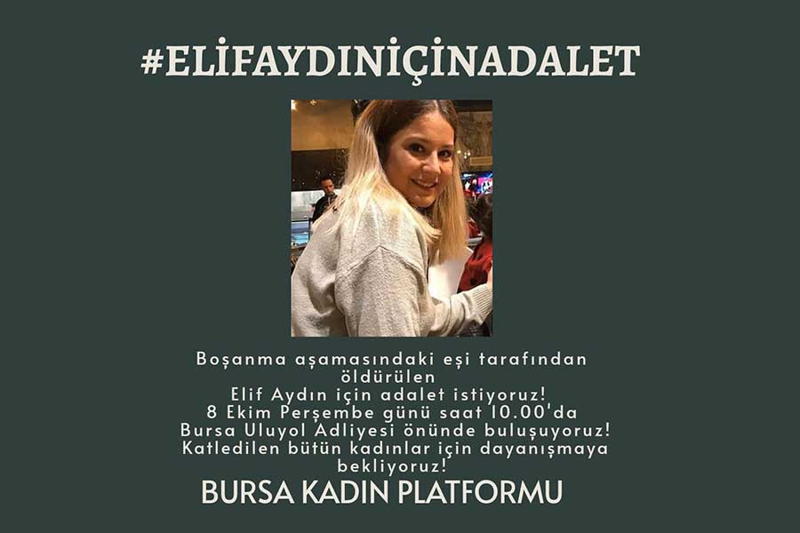 Davaya çağrı yapan Bursa Kadın Platformu, “İstanbul Sözleşmesi ve 6284 uygulansaydı Elif de birçok kız kardeşimiz gibi aramızda olacaktı. Adalet istiyoruz” diyerek yarın Bursa Adliyesi’nde saat 10’da görülecek davaya çağrı yaptı.