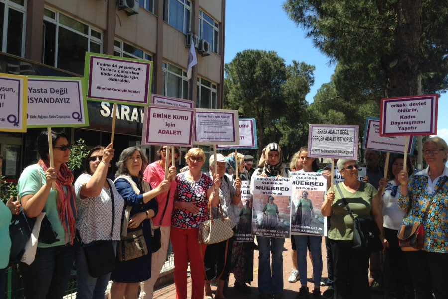 Bandırma’da eşinin eski ortağının ilişki teklifini kabul etmediği gerekçesiyle tarlada çalışırken öldürülen Emine Kuru’nun cinayet davası geçtiğimiz günlerde görüldü. Bir sonraki duruşma 25 Mayıs’ta. Körfez Bağımsız Kadın Dayanışması kadınları Emine’nin davasına destek vermeye çağırıyor.