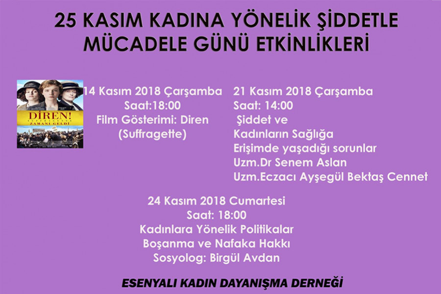 14 Kasım günü saat 18.00’de dernek binasında bir araya gelecek kadınlar Diren filmini izleyecek.