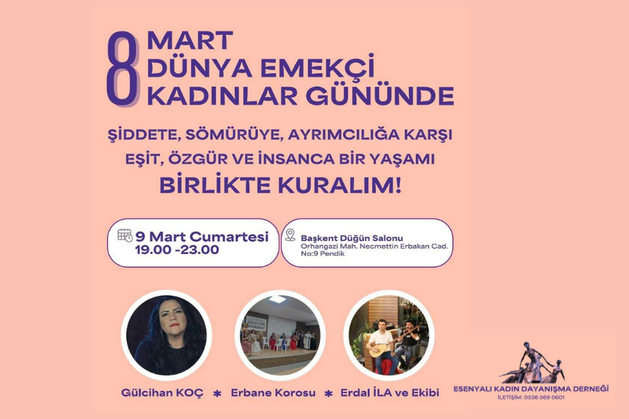 Esenyalı Kadın Dayanışma Derneği, "Şiddete, sömüyüre, ayrımcılığa karşı eşit, özgür ve insanca bir yaşamı birlikte kuralım" diyerek buluşmaya çağırıyor