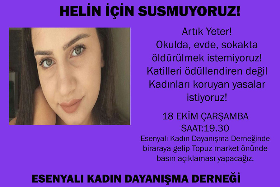 Tüm kadınlara çağrı yapan Esenyalı Kadın Dayanışma Derneği kadınların da desteğiyle ‘Helin için susmuyoruz’ diyecek. Yarın Esenyalı Kadın Dayanışma Derneği önünde toplanacak kadınlar Topuz Market önünde basın açıklaması yapacak.