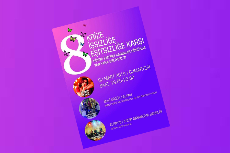 Pendik’in Esenyalı ilçesinde 5 yılı aşkın zamandır çalışma yürüten Esenyalı Kadın Dayanışma Derneği tüm kadınları krize, işsizliğe, eşitsizliğe karşı; Dünya Emekçi Kadınlar Günü öncesinde yan yana gelmeye çağırıyor.