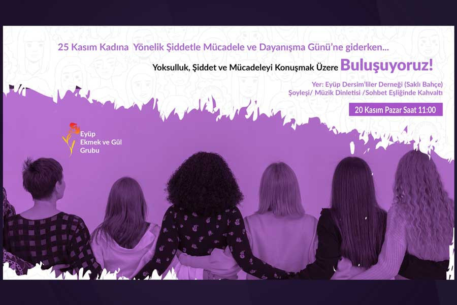 25 Kasım Kadına Yönelik Şiddete Karşı Mücadele ve Dayanışma Günü’ne giderken Eyüp Ekmek ve Gül Grubu kahvaltı etkinliğinde buluşuyor, yoksulluk, şiddet ve mücadeleyi konuşuyor.
