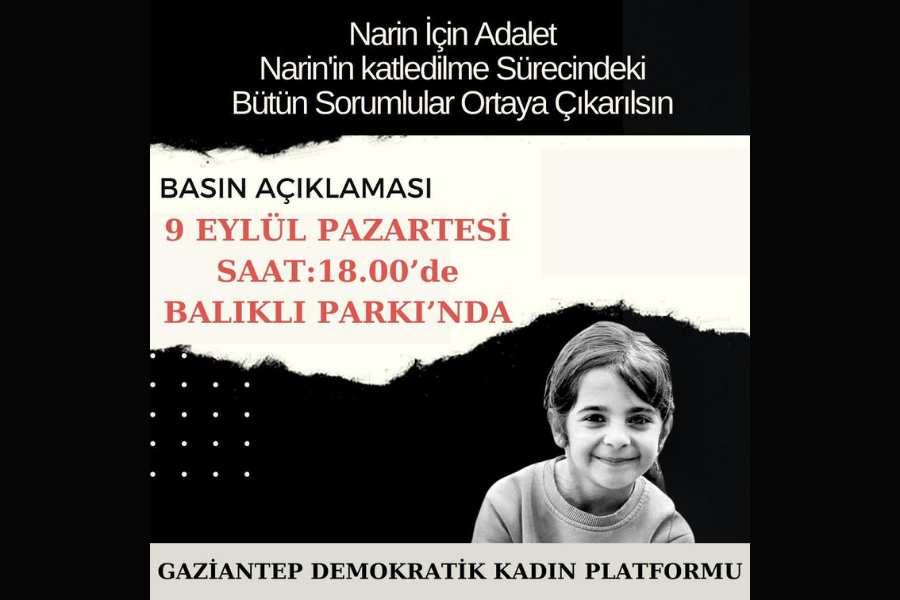 Gaziantep Demokratik Kadın Platformu, Narin'in ölümüne sebep olan tüm sorumluların ortaya çıkartılması için bir araya geliyor.