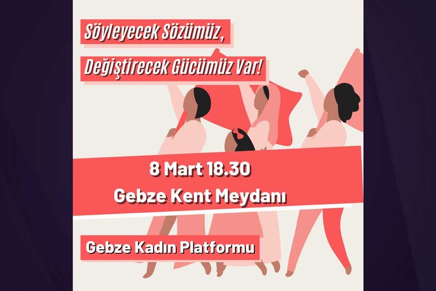 Kocaeli İstanbul Sözleşmesi İnisiyatifi ve Kocaeli Kadın Platformu 8 Mart günü “Sen, ben, biz birbirimizin çaresiyiz” şiarıyla eylem gerçekleştiriyor.