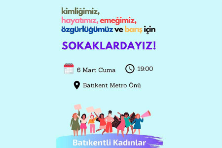Batıkentli kadınlar 8 Mart öncesi sokağa çıkıyor. ‘Kimliğimiz, hayatımız, emeğimiz, özgürlüğümüz ve barış için SOKAKTAYIZ!’ diyen Batıkentli kadınlar ‘Haydi sen de gel!’ diyor.