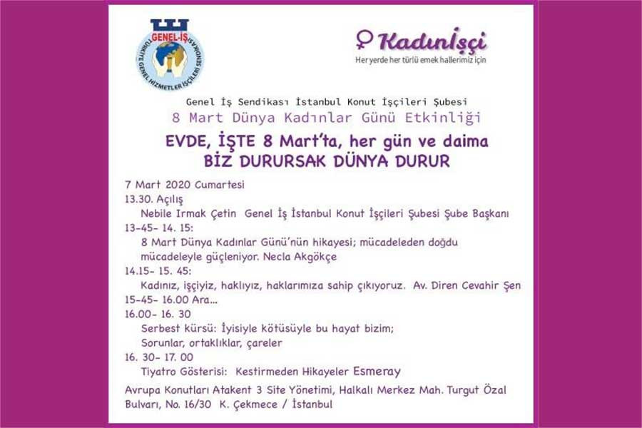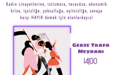 Gebze 8 Mart Kadın Platformu, kadın cinayetlerine, istismara, tecavüze, ekonomik krize, işsizliğe, yoksulluğa, eşitsizliğe, savaşa karşı alanlara çıkıyor.
