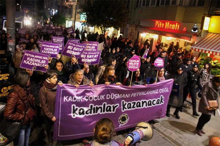 Son yıllarda giderek hayatın her alanına sirayet eden Diyanet İşleri Başkanlığı’nın biz kadınların yaşamı üzerindeki etkisi artık tartışılmaz. Müftülere nikah yetkisi, kadın düşmanı fetvalar, dini referans göstererek yapılan cinsiyetçi yayınlar, protokollerle devletin sosyal sorumluluklarının önemli bir kısmının diyanetin eline bırakılması… Diyanet yeri geliyor toplumu dizayn için kullanılıyor, yeri geliyor kadınları kontrol altına almak için, yeri geliyor savaş çağrıları yapmak için. Bu konuda sorun önümüze geldiğinde refleks göstermenin artık yeterli olmadığını biliyoruz. Bu nedenle diyanet işleri başkanlığının hayatlarımız üzerindeki etkisini ve buna karşı mücadeleyi konuşmaya devam ediyoruz.