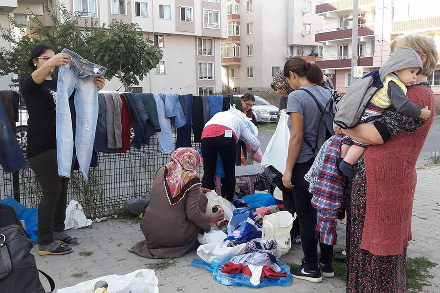 Çorlulu kadınlar ‘Atma, paylaş’ kampanyası ile bir araya gelip eşyalarını paylaşıyor, dertlerini konuşuyor.
