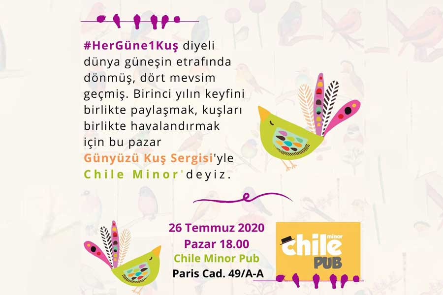 Gezegenimizdeki minik dostlarımız kuşları boyalarıyla her sabah yeniden kanatlandıran Hatice Kapusuz’un bizlere bir daveti var. Sevgili Hatice, “Her Güne 1 Kuş” diyerek çıktığı yolculuğun birinci yılında bu maceraya eşlik edenleri paylaşmaya, kuşları birlikte havalandırmaya bekliyor. Yalıçapkını, Sığırcık, Serçe, Taklacı, Anka ve 365 güne sığan daha nicesi bu pazar omzunuza konmak, sohbet etmek, keyifle paylaşmak için kanatlanacak. Bir maniniz yoksa 26 Temmuz Pazar günü “Günyüzü Kuş Sergisi”ne davetlisiniz...