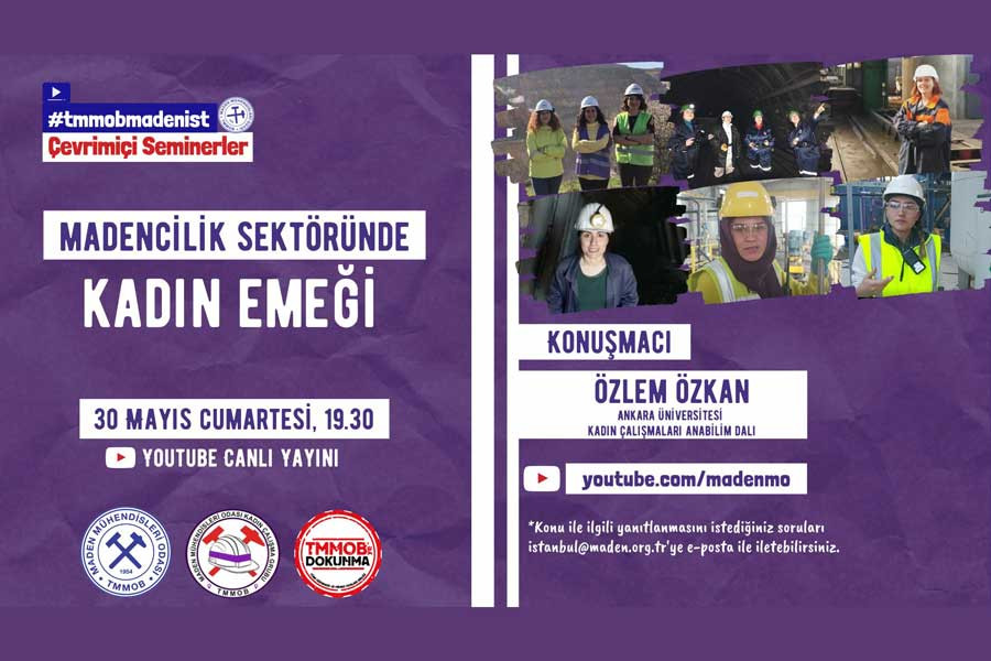 30 Mayıs Cumartesi 19.30’da yapılacak programa Ankara Üniversitesi Kadın Çalışmaları Anabilim Dalından Özlem Özkan konuşmacı olarak katılıyor. Programı TMMOB Maden Mühendisleri Youtube kanalından takip edebilirsiniz.