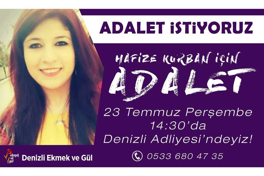 Herkesi 23 Temmuz saat 14.30 da #HafizeKurban ın karar duruşmasına davet ediyoruz!
